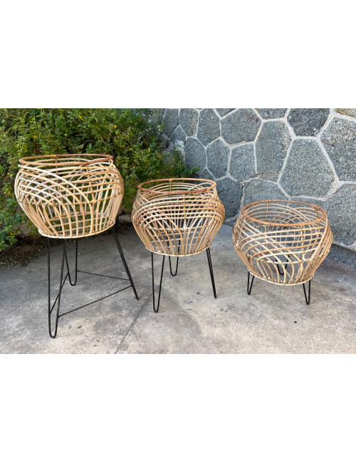 Lot de 3 cache-pots rotin sur pieds 37-51-63cm